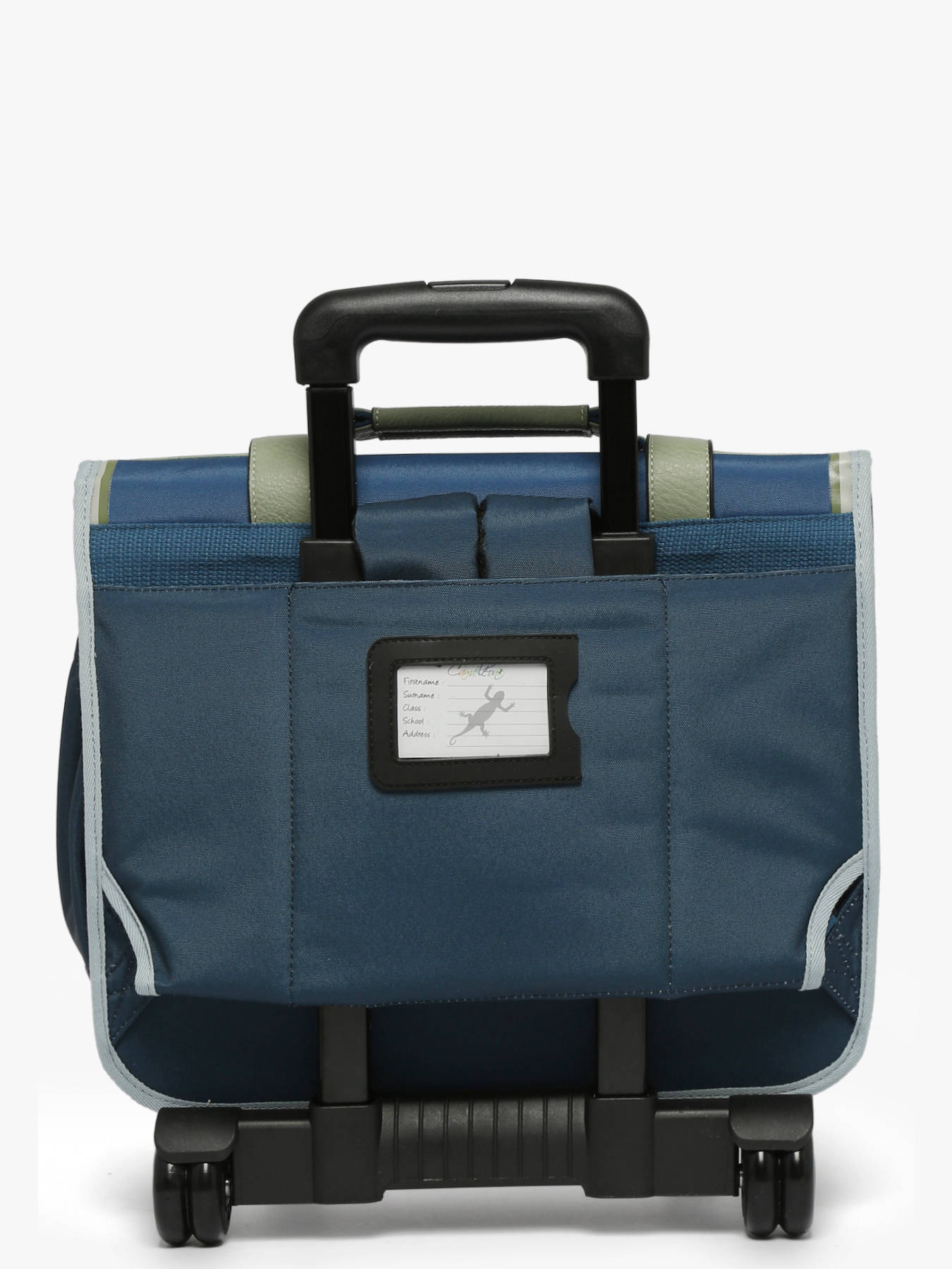 38 cm - 15 litres - 2.33 kg ~ Cartable à roulettes enfant 38 cm de la ligne Vintage Urban signé Caméléon. Idéal pour le CP, CE1 et CE2. Composé de 2 compartiments séparés par une poche centrale zippée, ce cartable enfant est pensé pour ranger toutes les affaires scolaires. Il peut contenir du format cahiers A4. Pratique, l'intérieur se compose d'un emplacement spécial règle. A l'extérieur il y a un emplacement pour la gourde. Les poches extérieures zippées sont idéales pour ranger les petits effets comme l'agenda ou le goûter. Pour faire rouler le cartable, les bretelles doivent être rangées dans la poche au dos. A la fois renforcé et rembourré, ce cartable assure confort et résistance. Côté sécurité, il dispose de bandes réfléchissantes sur le devant et sur les bretelles du cartable. Fabriqué en polyester recyclé imperméable. Petit plus, la règle est offerte !